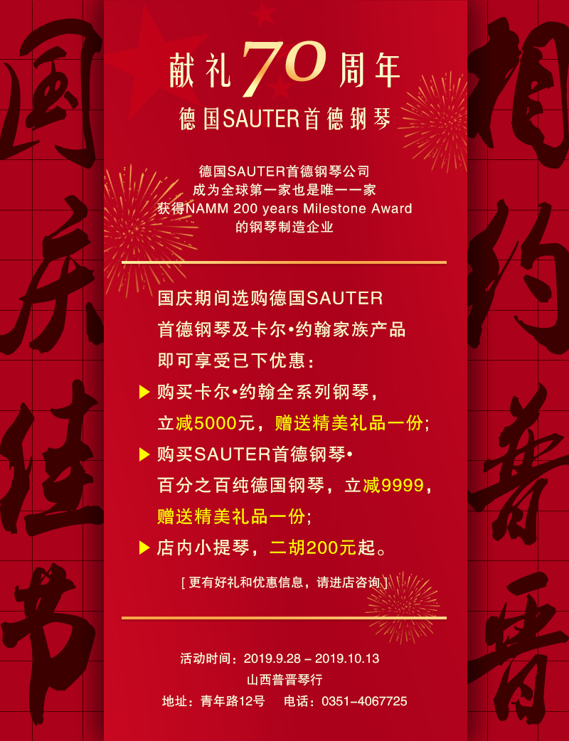 普晉琴行,十一大促,所有到店的客戶,均有小禮物相送,這個國慶讓我們買買買起來!